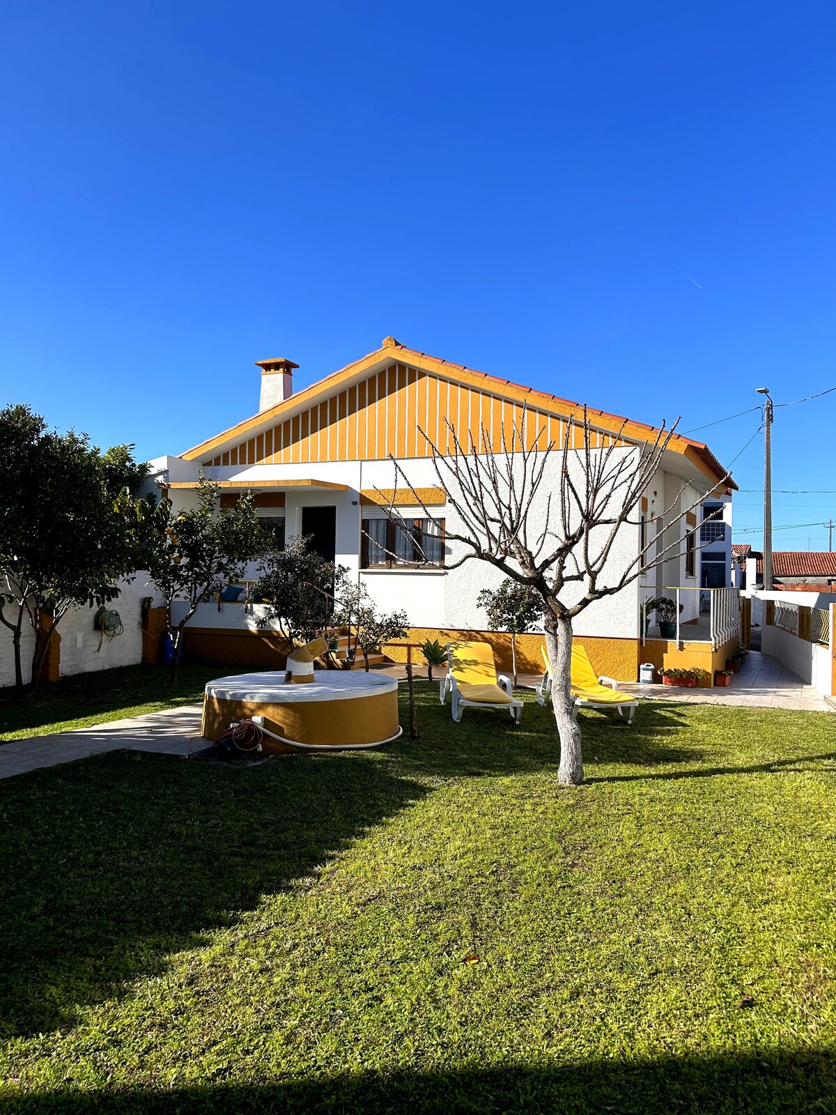 En nuestra casa, puedes disfrutar de una relajación total, con la naturaleza circundante, como árboles frutales, hierbas aromáticas y un amplio jardín para niños y animales. Zona de porche con barbacoa, ducha al aire libre y piscina de superficie para refrescarse en los días y noches calurosos La Lagoa da Ervedeira está a 8 minutos (5,6 km); Praia do Pedrogão está a 8 minutos (7 km); Praia da Vieira y Mariparque están a 12 minutos (12 km). El centro de Leiria y el castillo de Leiria están a 23 km en coche.