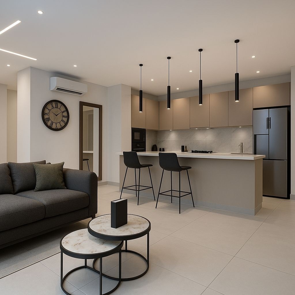 Estarás cerca de todo cuando te alojes en este elegante alojamiento de dos dormitorios, situado en un barrio tranquilo con electricidad las 24 horas. Este acogedor refugio cuenta con una decoración elegante y una cocina totalmente equipada. Cada dormitorio está diseñado pensando en la comodidad. El baño cuenta con características modernas y un ambiente relajado. Disfruta de tus paseos matutinos en la hermosa, tranquila, serena y segura finca. Perfecto para parejas, familias, amigos o viajeros de negocios que buscan una estancia inolvidable