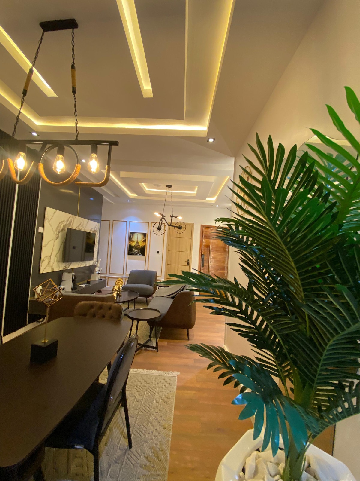 Escápate a la comodidad en este elegante apartamento de 4 dormitorios y 4,5 baños en Oniru Estate, Victoria Island, Lagos. Disfruta de un amplio salón con un suave sofá, aire acondicionado, wifi, Smart TV con Netflix y una acogedora zona de comedor. La cocina totalmente equipada tiene de todo para comidas caseras. Cada dormitorio con baño ofrece comodidad y privacidad. Perfecto para familias, viajeros de negocios o grupos que buscan lujo, comodidad y seguridad las 24 horas del día, los 7 días de la semana en uno de los barrios más codiciados de Lagos.