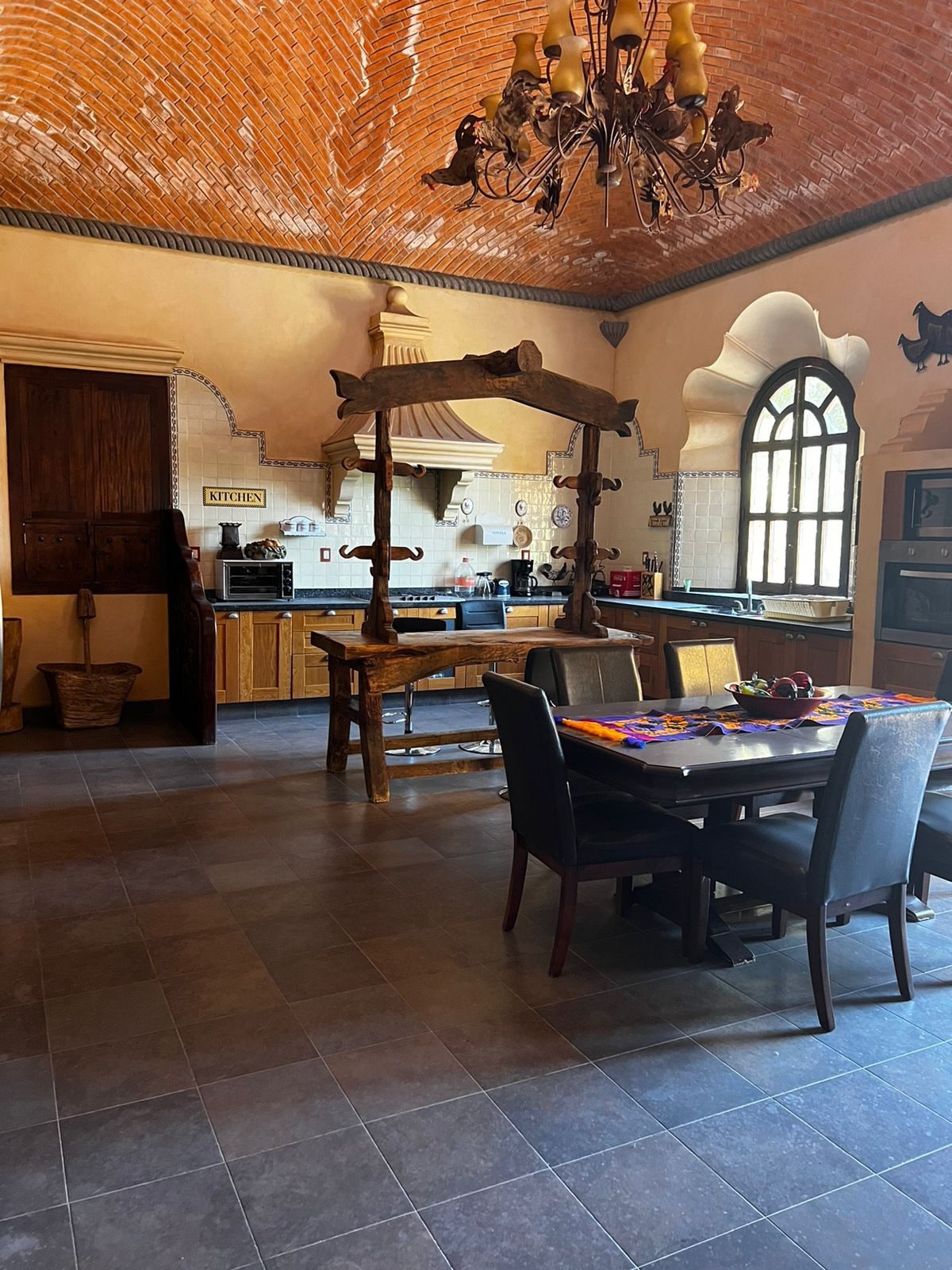 Hermosa residencia estilo colonial para 8 huéspedes en 2 amplias recámaras una con cama king size y sofá cama la otra con 2 camas queen y una individual comedor y Cocina , 2 baños completos 3 medios baños y regaderas en área de alberca , cancha de fut , mesa de Ping pong , juegos infantiles , asador , área de cúpula y alberca , 2 tv’s con acceso a Wi fi , Chimenea y AC en toda la casa El fraccionamiento es muy tranquilo y con vigilancia las 24 hrs a solo 8 min del aeropuerto y de altacia