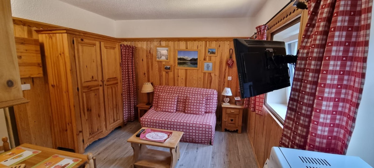 ❄️ Mini studio tout équipé ❄️ ⛷️Départ direct ski : télésiège et navette gratuite au pied de la résidence 🏡 Résidence calme, pleine nature au cœur du domaine des Glovettes , 1er étage, ascenseur 🅿️ Parking 🛏 Canapé convertible 2 pers Lit mezzanine 2 pers (⚠️bas sous plafond) 🎿 Local à skis / vélos 🛷 Luges à disposition 🔑 Arrivée et départ autonomes 🛜 Wi-Fi fibre + Smart TV 🚫 Linge de lit / toilette non fourni ➡️ en supplément 🧽 Ménage à votre charge