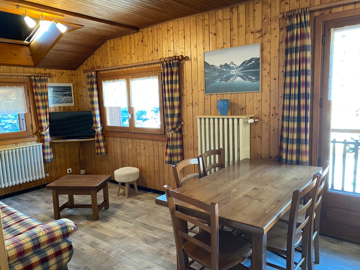 Gran estudio de 26 m2 para 4 personas, situado en la planta baja de un pequeño edificio. El estudio está dispuesto así: entrada con literas, gran armario, inodoro separado, baño con lavadora. Cocina abierta a la sala de estar que tiene un sofá cama de 140 cm , zona de comedor, televisión, wifi gratuito. Un amplio ventanal le permite acceder a una gran terraza privada. Estacionamiento gratuito en el exterior, garaje cubierto privado.Casier para esquís.