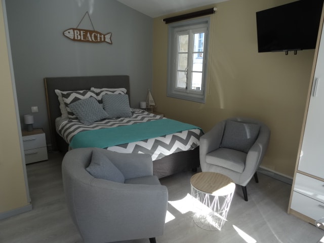 Nuestro estudio de 24 m2, se encuentra en el centro de Rochefort, a 10 minutos a pie de los baños termales, a pocos metros de la plaza Colbert y de la Corderie Royale. En la planta baja, muy tranquilo, aunque el estudio da a la calle. Está compuesto por una cocina, placas de inducción, tostadora, tetera, Nespresso y refrigerador con compartimento congelador independiente. La cama (160 x 200) está separada del resto de la habitación por un biombo decorativo. Tenga en cuenta que no hay lavavajillas.