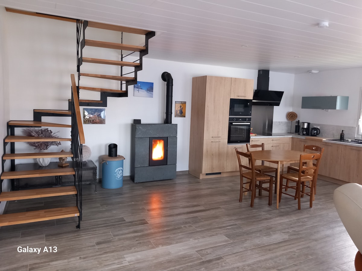 Ancien atelier de mécanique totalement rénover avec vue sur les montagnes et très lumineux avec le son de l eau de la petite fontaine qui coule. Nous acceptons que 1 chien de compagnie et bien élever , et chat non accepter merci de votre compréhension.