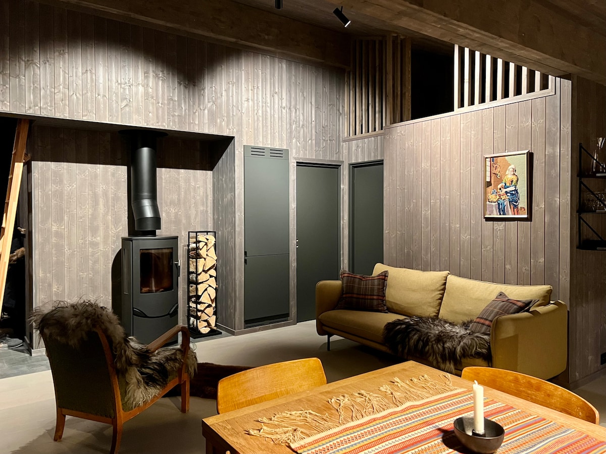 Imagina que te despertarás en la cabaña más acogedora del mundo con naturaleza justo afuera de la puerta. Las grandes ventanas te hacen sentir igual de afuera cuando estás adentro. El mejor río de pesca de Noruega está tan cerca que prácticamente puedes pescar desde el porche. En verano se ve la trucha agrietarse. En invierno, el río es como un pedazo de nieve y hielo.