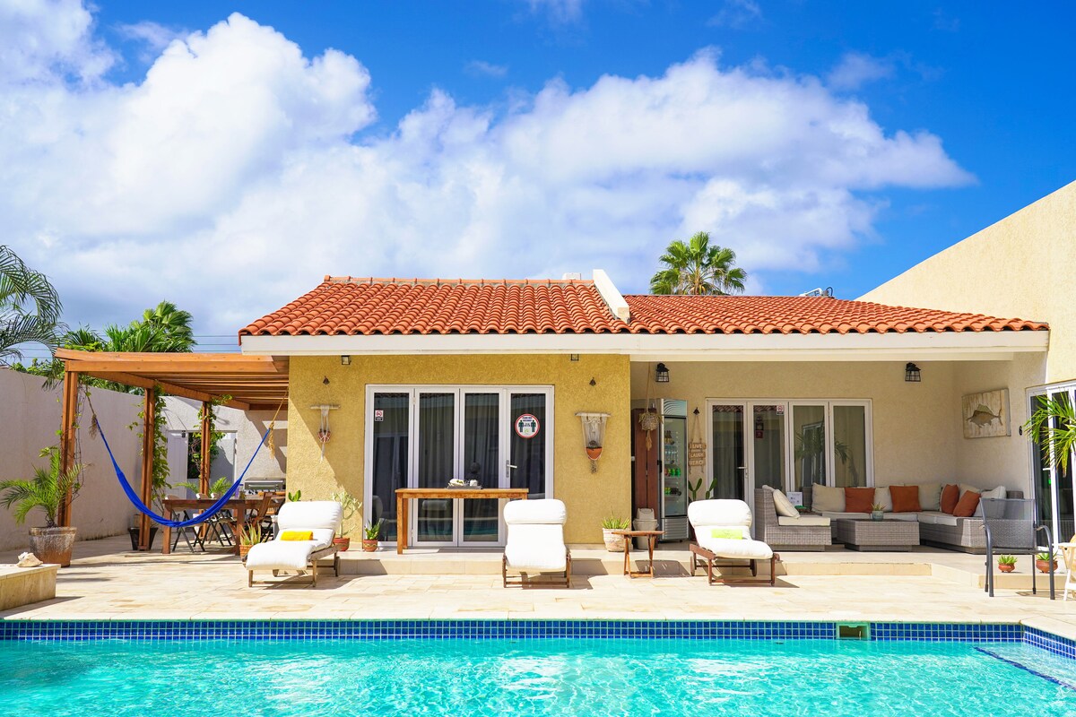 Escápese a nuestra villa mediterránea y disfrute de las arenas blancas de Aruba la isla feliz, hospédese en un apartamento de lujo con las mejores comodidades de un hogar caribeño, entrada desde el area del jardín, relájese en la piscina y disfrute de nuestro jardín tropical en el hamaca bajo las palmeras. UBICACIÓN PERFECTA *Palm Beach 400 mts a pie *Supermercado Noord 350 mts a pie *A solo 4 min manejando de restaurantes, discotecas y shopping. ~LOS NIÑOS SON BIENVENIDOS