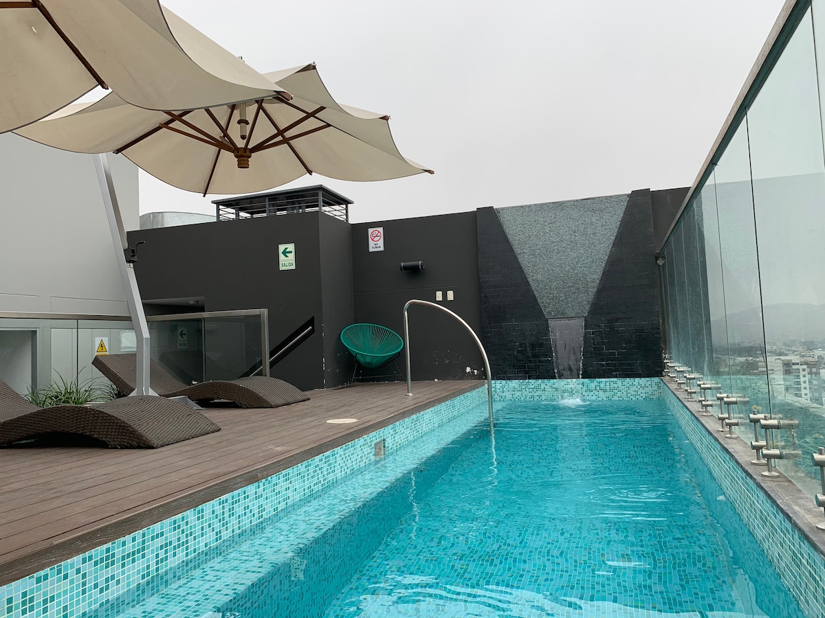 Hermoso apartamento con piscina, cerca de Miraflores.