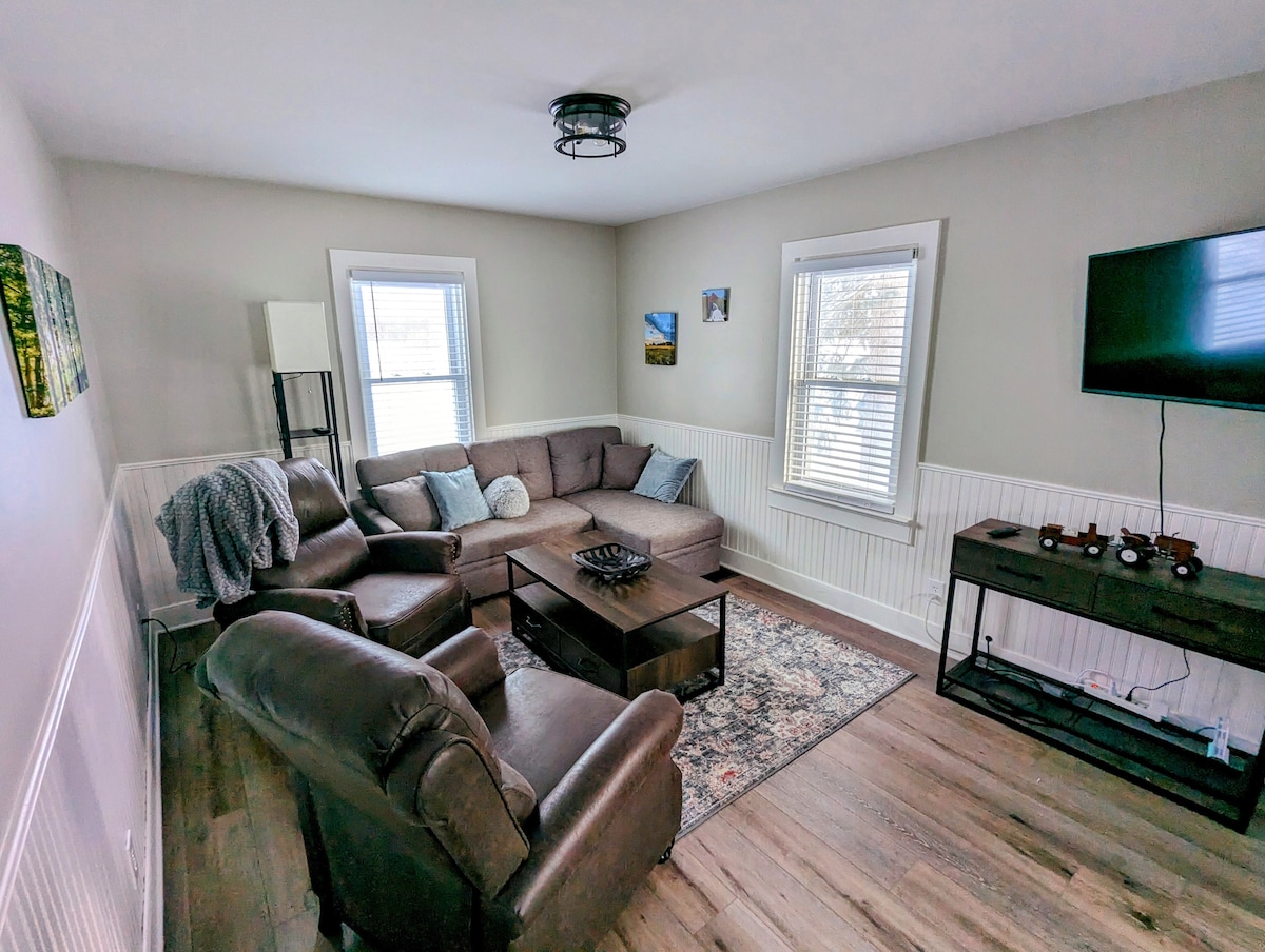 Todo lo que necesitas para relajarte y recargar energías en un espacio acogedor. Entrada privada. Esta suite es de planta abierta con una pequeña cocina americana que incluye nevera, microondas y fogones con utensilios de cocina básicos y platos. Se encuentra en la ciudad, cerca de tiendas y restaurantes. Bonito patio trasero con zona cubierta para asar a la parrilla. A poca distancia a pie del sendero North Country Trail y a 10 minutos del nuevo sendero Dragon Trail. Hay una cama tamaño queen y un sofá. Dormirán cómodamente dos huéspedes.