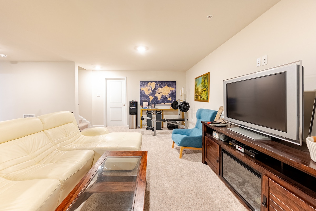 • Aparcamiento en la puerta, fuera de la calle •Internet de fibra, televisores inteligentes (66" y 44") con streaming, vinilos y arcade • 86 puntos de paseo: 10 minutos a pie (1,5 millas) al centro de la ciudad + Historia de la Guerra Civil. ¡Comer, beber, comprar! • A 15 minutos a pie de Creek & Baker Park (5 minutos en coche) • A 3 minutos en coche de Frederick Health • Café local + espacio de trabajo • Cómoda cama tamaño king de felpa + cortinas opacas. • Barrio tranquilo y porche soleado con asientos Wifi rápido, comodidad silenciosa y fácil aparcamiento, ¡tu estancia ideal en Frederick!
