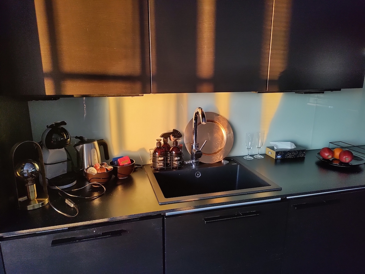 Un acogedor triángulo de 55,5 metros cuadrados en el centro de Joensuu cerca de la biblioteca principal, la Arena y la Universidad. Tienda de comestibles más cercana a solo 100 metros. Camas para seis personas. El apartamento está ubicado en el primer piso de un edificio de apartamentos, pero no está en el suelo. Equipado con toallas, ropa de cama, jabón, secador de pelo, lavadora-secadora, utensilios básicos de cocina, lavaplatos, refrigerador, microondas, estufa, cafetera, hervidor de agua, tostadora, TV inteligente de 55 pulgadas y wifi.