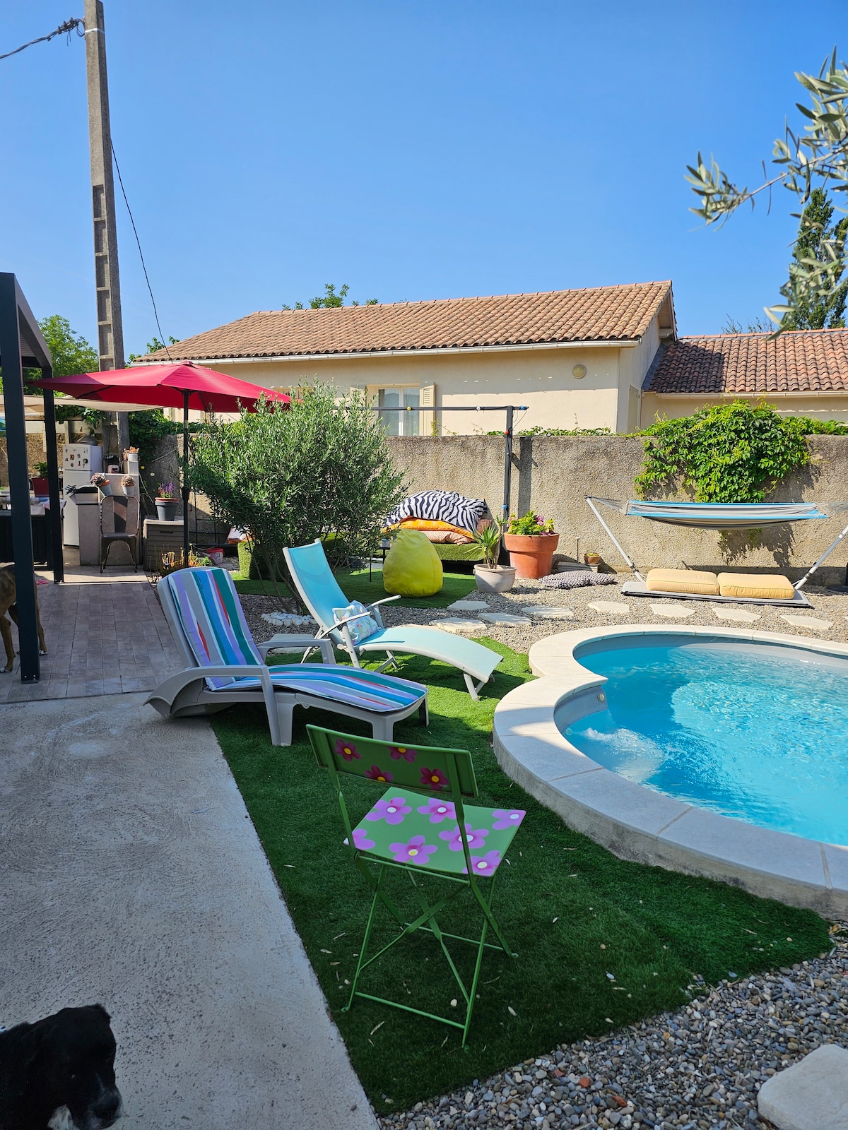 We welcome you to our rennovated stone annex situated within the family vineyard. With an extensive garden, heated pool (April till Oct) and summer kitchen you can relax with all the modern comforts. You get a real sense of being in the country side yet less than 15min to Avignon centre and TGV. We will also be happy to give you a guided tour of the vineyard and of course sample the wines. (Complementary wine included at your arrival) We can host up to 4p (children included)