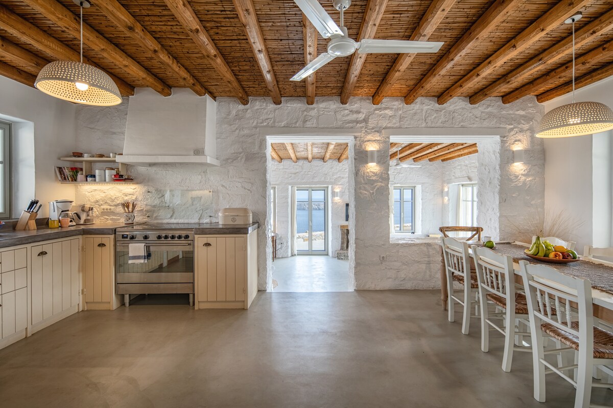 Disfruta del sol griego y de las aguas azules cristalinas con el entorno perfecto de una villa griega cicládica justo enfrente de la conocida playa de Platis Gialos con aguas azules prístinas. Los amantes de la gastronomía encontrarán el equilibrio perfecto entre comida tradicional y moderna con restaurantes griegos auténticos y de alta calidad. (Por ejemplo, To Steki, Omega 3) Las magníficas vistas al mar, la privacidad de toda la villa y la ubicación frente al mar son garantía de unas vacaciones perfectas.