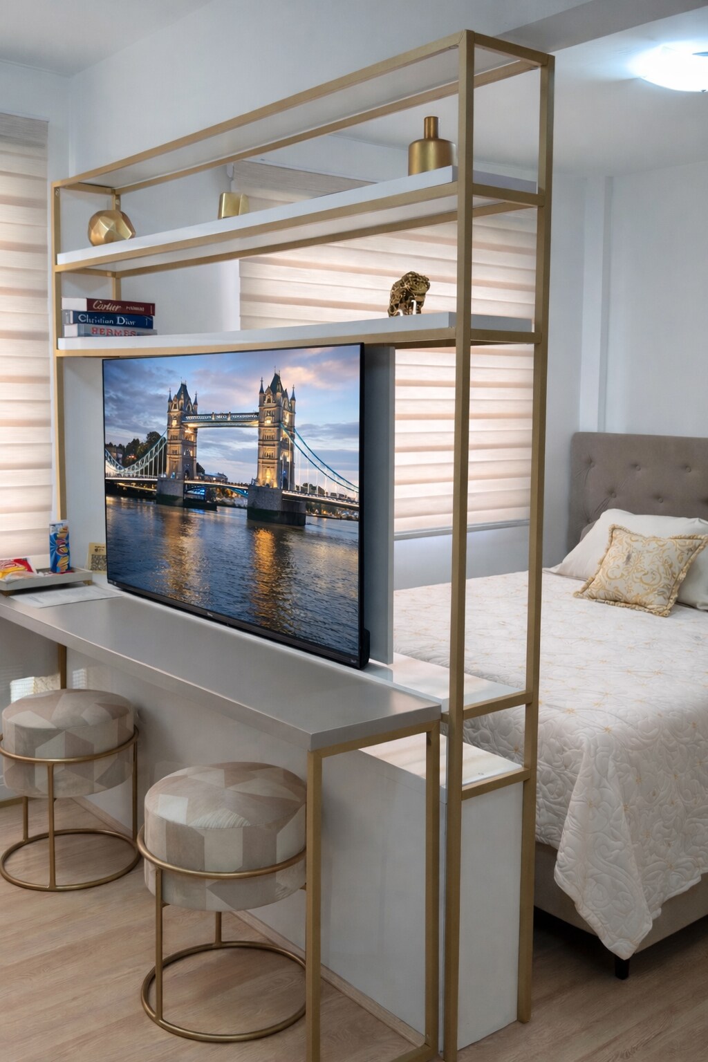 Nosso studio de 17m² no One House é uma solução prática para quem busca um espaço compacto e bem localizado. Situado a apenas 850m. do Shopping Palladium e a 750m. do Supermercado Muffato, o edifício oferece conveniência e acessibilidade. O apartamento é projetado de forma eficiente para maximizar o uso do espaço, proporcionando uma área de jantar, cozinha integrada, banheiro e quarto.