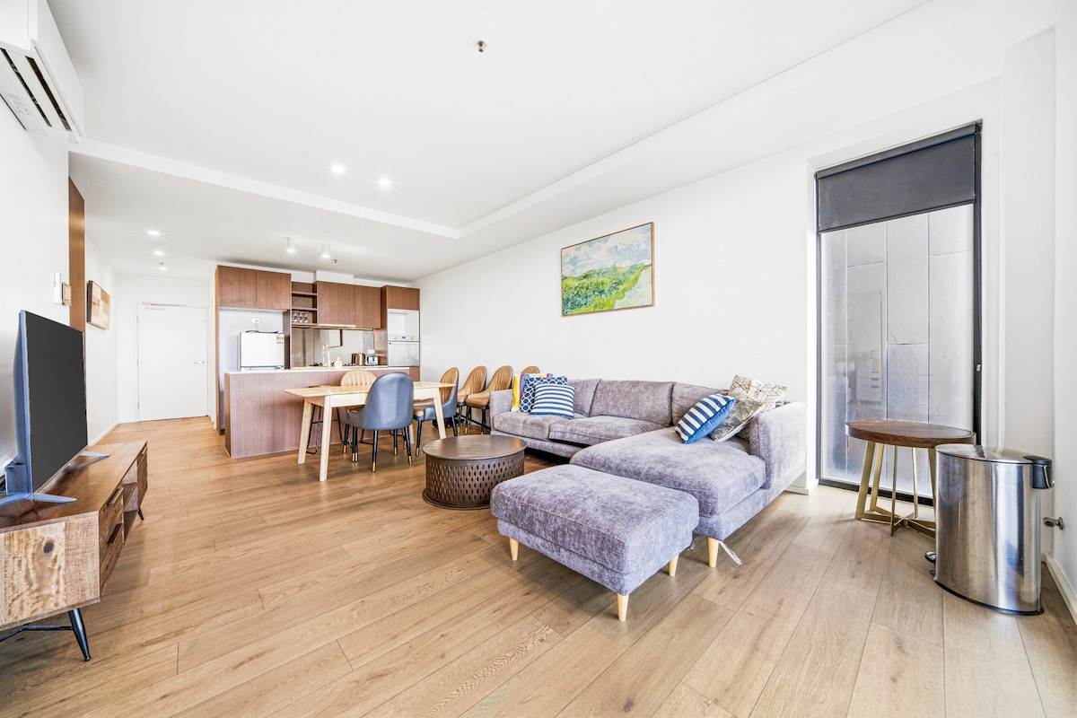 Moderna unidad de 2 dormitorios, cerca de tiendas, parques y tren