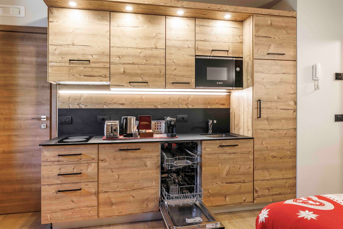 Gran apartamento tipo estudio recientemente renovado en el corazón de Bormio, ¡en el corazón de la histórica Via Roma! Gracias a esta ubicación envidiable, todo está a tu alcance: compras, paseos, spas, esquí en la famosa pista de Stelvio, arte, cultura y relax... El apartamento tiene wifi rápido, electrodomésticos de clase energética A+++, lavavajillas, lavadora y secadora, horno combinado, vitrocerámica de inducción, nevera...