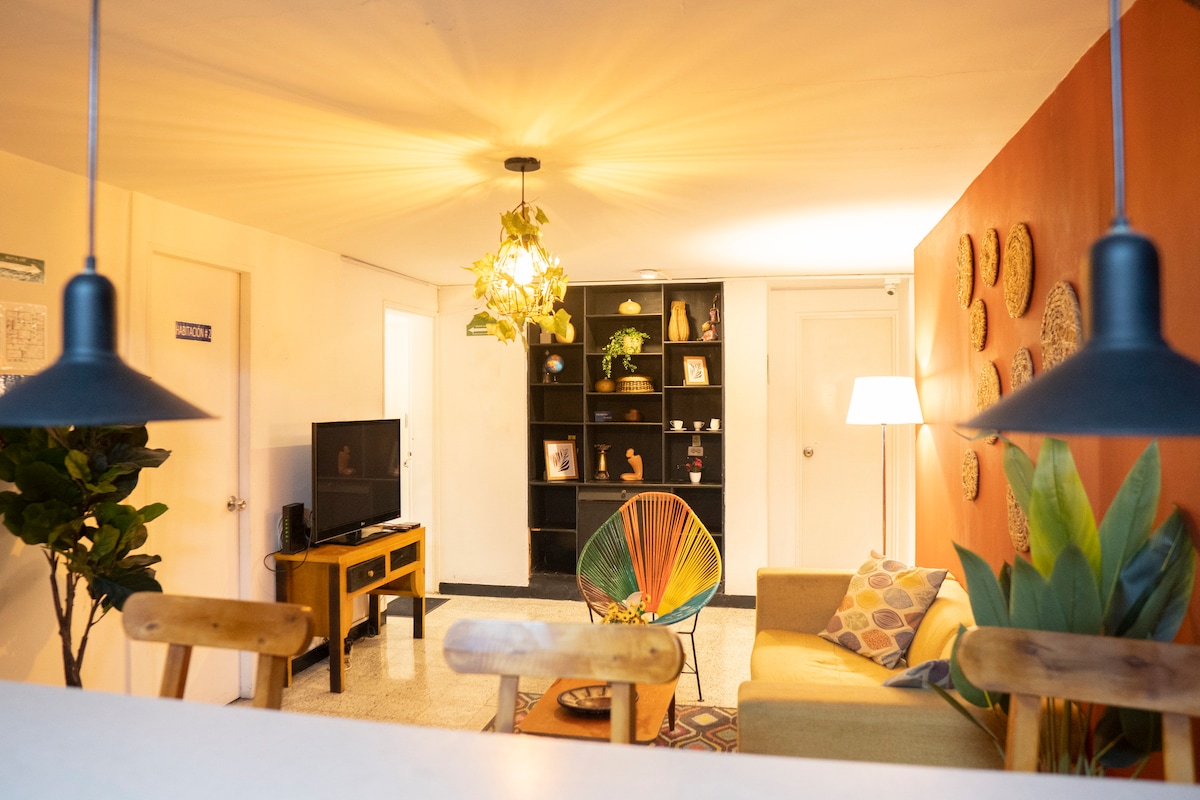 Disfrute de la comodidad y privacidad de esta acogedora habitación con baño privado, cama doble y wifi ultrarrápido de 900 Mbps, ideal para teletrabajar o relajarse en pareja después de un día de turismo. Ubicada en Manila, El Poblado, el barrio más animado de Medellín, está a pasos de acogedores cafés, restaurantes de primera categoría y la vida nocturna de Provenza y Parque Lleras. A solo 5 minutos a pie de la estación de metro Poblado, con fácil acceso a toda la ciudad.