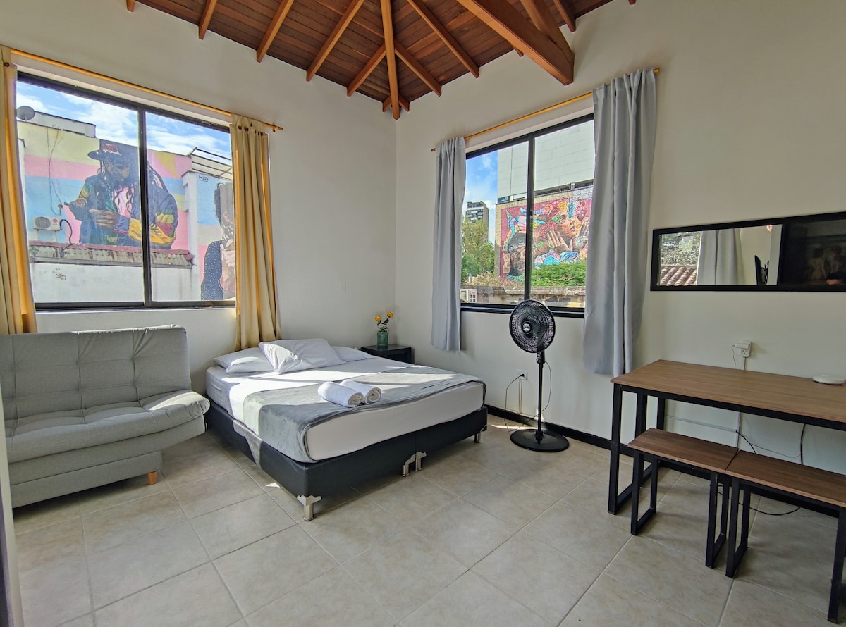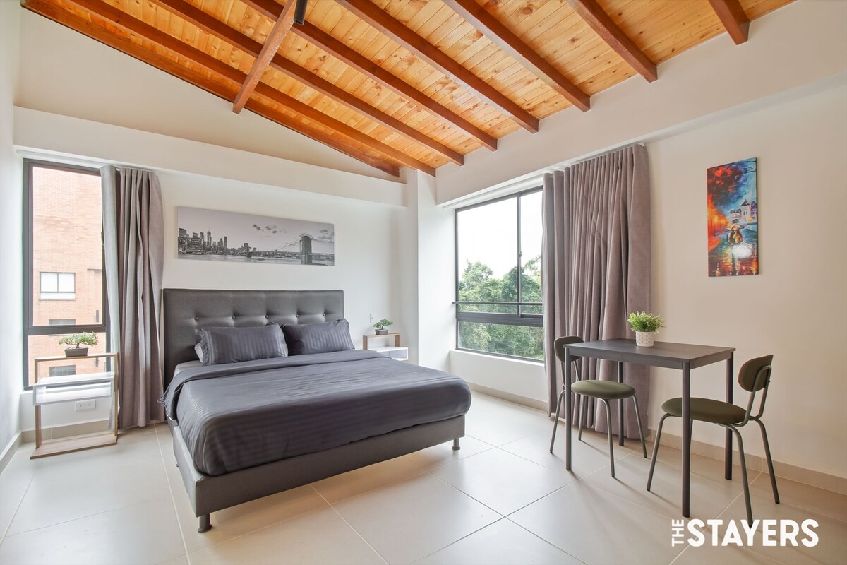 Increíble loft en Poblado, aire acondicionado, wifi rápido, lavandería