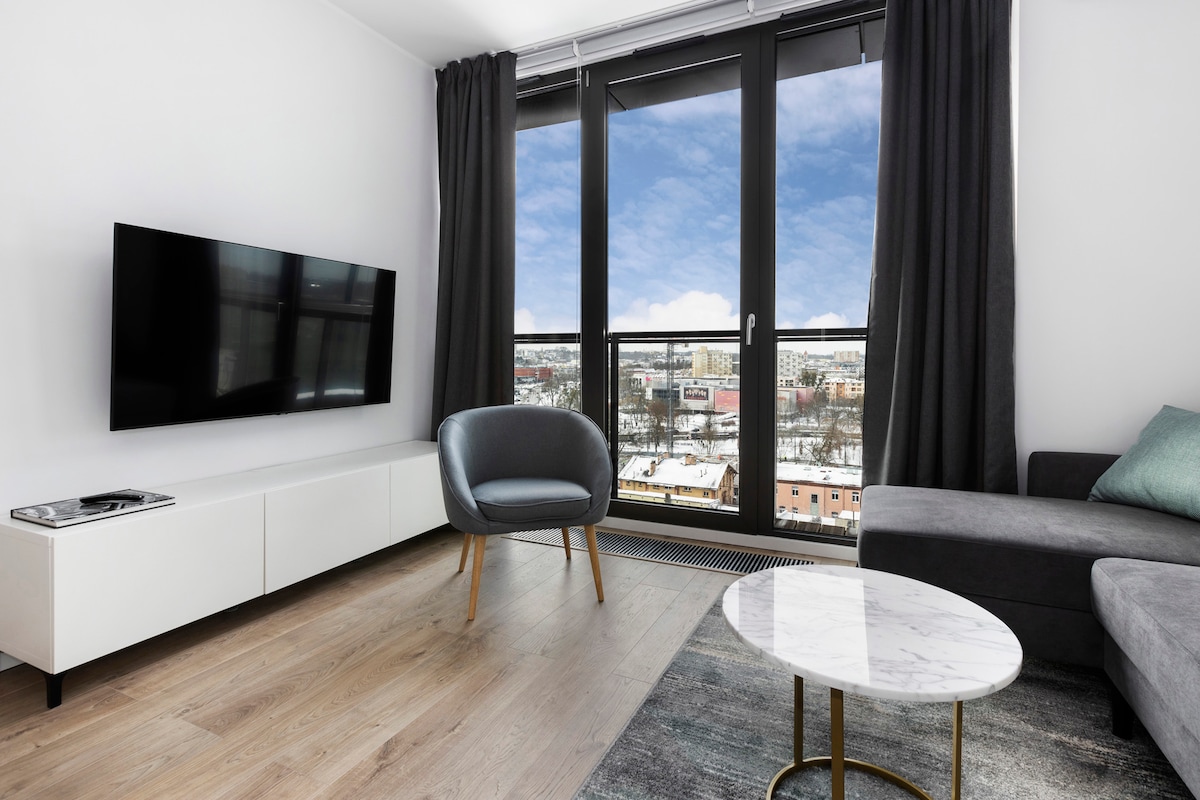 Welcome to the Gold 7 Apartment - a perfect combination of modernity, comfort and functionality in the center of Bydgoszcz. Located on the 1st floor of a modern block with an elevator. Ideal for renting to couples, families and companies, both for a longer stay and short trips! Equipment: - Bedroom with a comfortable double bed - Additionally 2 fold-out sofas, which allow for accommodation even for a larger group - Modern bathroom - Balcony, - Private parking space in the hall.