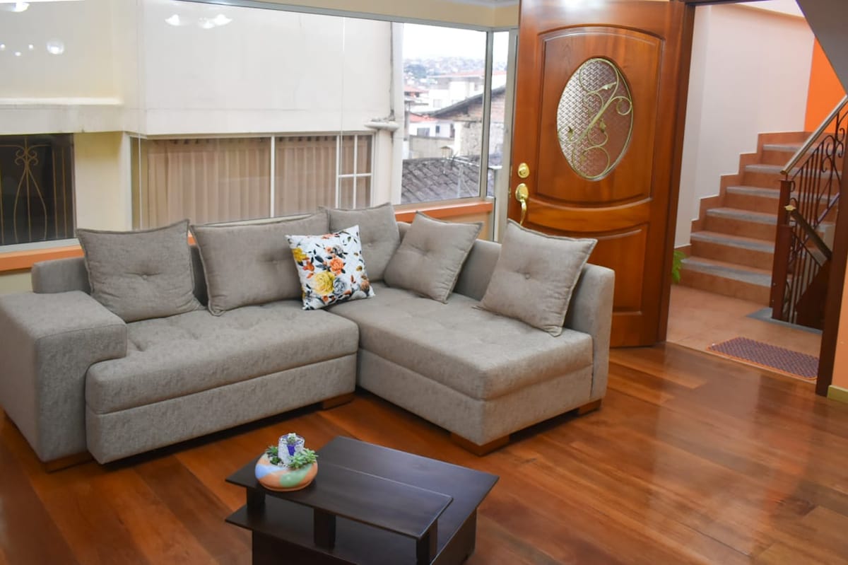 ✨Sweet Home es un amplio departamento tipo dúplex diseñado para que disfrutes una estadía cómoda y tranquila en la ciudad de Loja. 📍Está ubicado a solo 100 m de uno de los senderos más conocidos de la ciudad: La Ruta del Sauce, un hermoso recorrido natural que conecta con el Parque Jipiro perfecto para caminar o andar en bicicleta. 🛁 Relájate en el jacuzzi privado, disfruta del balcón con vista a las montañas y descansa en un espacio amplio ideal para familias o grupos hasta 9 huéspedes.