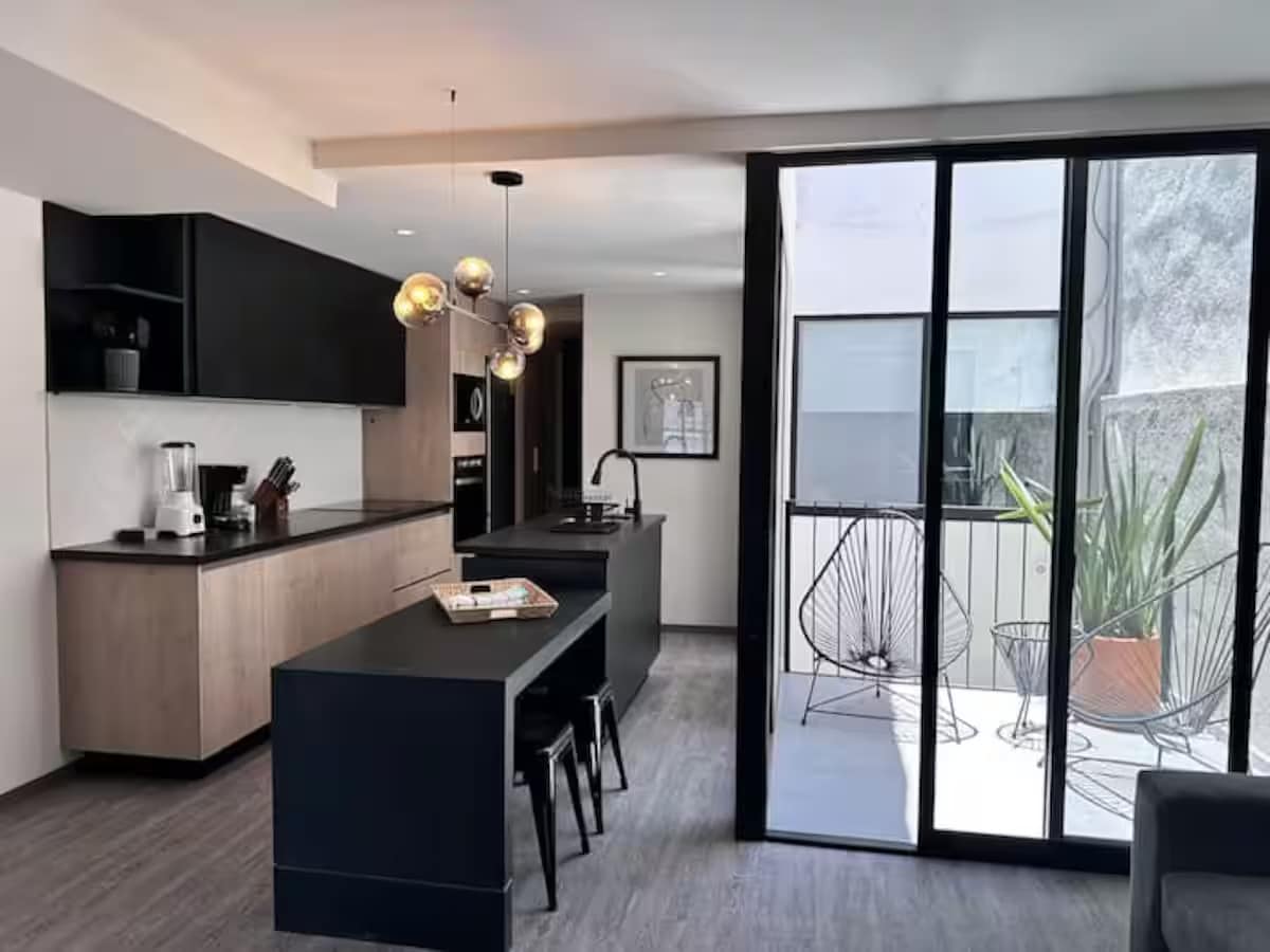 El departamento cuenta con aire acondicionado en RECÁMARA PRINCIPAL. El servicio se contrata por separado. Costo adicional de $99.00 pesos por día. Relájate en este espacio tan tranquilo y elegante. Totalmente nuevo con dos habitaciones. Espacioso para 4 huéspedes. Con opción para un 5to [con costo extra]. Con amenidades [gimnasio, ludoteca, espacio de trabajo, cine]. Excelente ubicación. En el sur de la ciudad. A 5 minutos de la plazas y supermercados. Haremos que tu estancia sea placentera.
