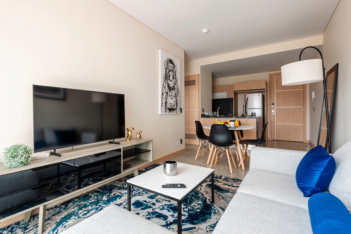 Our modern studio apartments by VIATO HOMES in Nomad Living are designed to maximize comfort and functionality in an open, contemporary layout. Each unit features a cozy sleeping area, full bathroom, compact fully equipped kitchen, and a stylish living space that’s perfect for business travelers, couples, or solo guests. Guests also enjoy access to building amenities including the gym, pool, coworking hub, and BBQ area, all within a secure building with 24/7 concierge and parking availability.