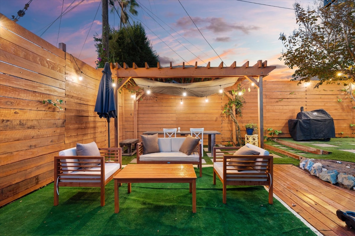 Welcome to The Hummingbird Hub, a serene escape nestled in the heart of Long Beach’s Wrigley neighborhood. This renovated home, brimming with 1940s charm, is the perfect retreat for those seeking a tranquil getaway while remaining close to the vibrant Los Angeles area. You can unwind in the sauna, gather around the fire pit, or simply enjoy your morning coffee on the patio and watch as hummingbirds flit among the gardens.