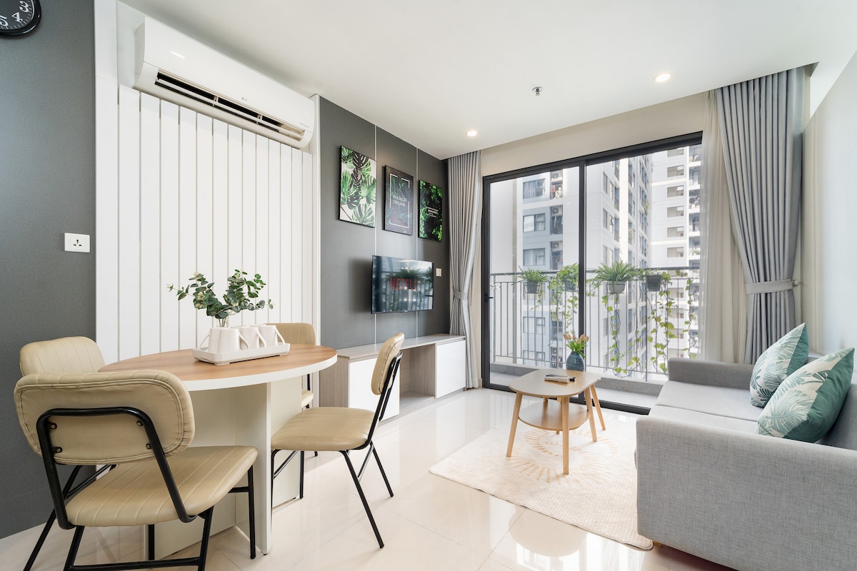 Hola desde 🍃Ben's Homes🍃 Nuestro apartamento está encantado de dar la bienvenida a los días brillantes de verano. Estudio con TV de 55 pulgadas para ver Netflix y relajarse. Departamento con deslumbrante vista al atardecer de 8p, vista interna a la piscina. Cocina lista, nevera, aceite esencial natural. Cerca de Vicom Mega Mall, CGV y también Vin Wonder. Listo para alquilar un paquete de 3 horas. También estamos dispuestos a prestar bicicletas para visitar Vinhomes. El departamento con un tono fresco y tranquilo, sofá suave, árboles verdes decorativos y muchos libros están disponibles para tu experiencia.🍃