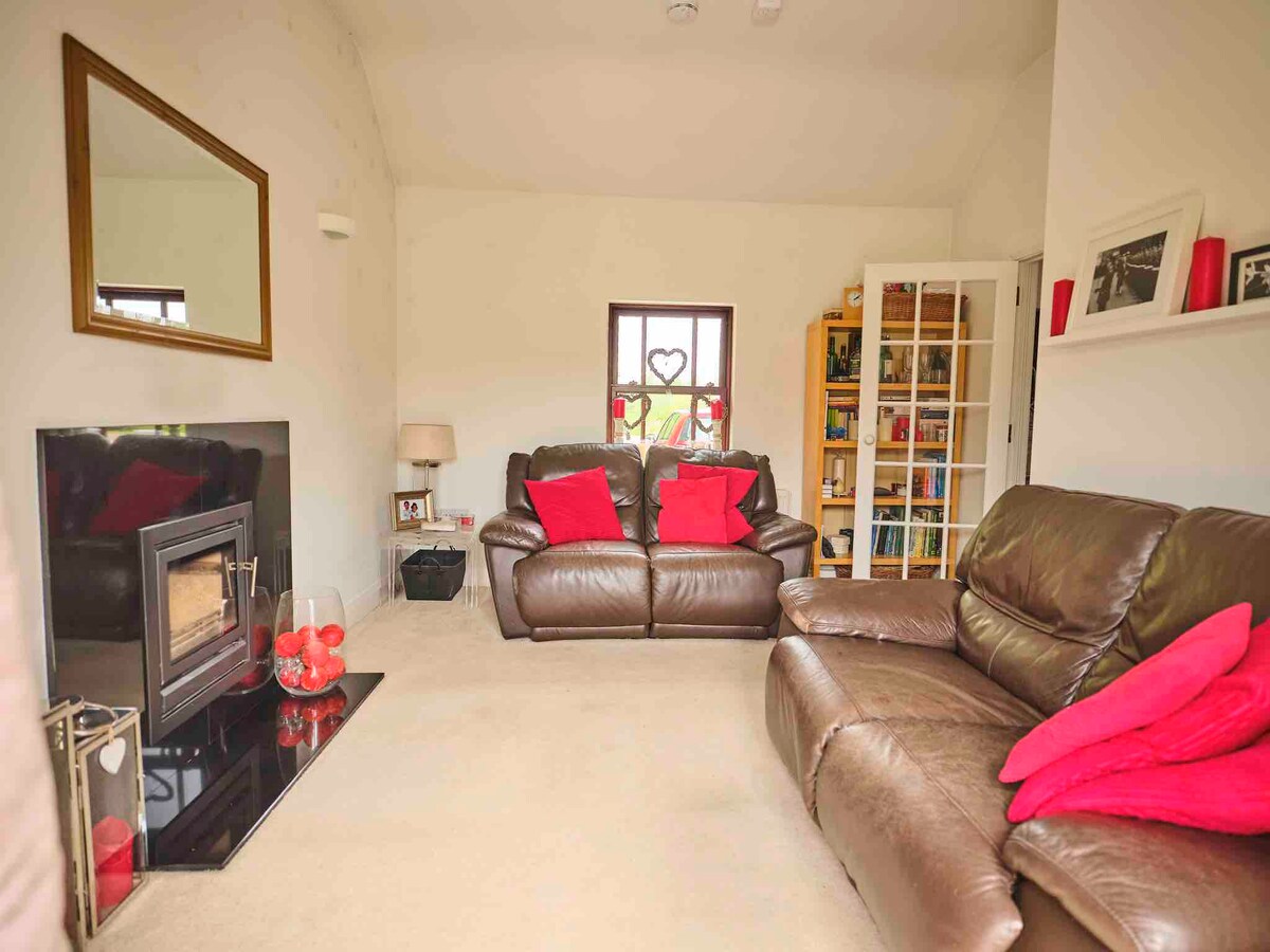 Nuestras casas de campo independientes son parcialmente accesibles con 4 dormitorios, incluido un baño doble en la planta baja. Tiene capacidad para 7 personas más un sofá cama doble opcional. Rodeado de serenos campos y naturaleza, es el lugar ideal para desconocer con familiares y amigos. La cabaña está totalmente equipada y amueblada, incluyendo cocina, electrodomésticos de cocina completa y lavandería, sala de estar con techo abovedado y sala de desayuno con fuego eléctrico. Incluye ropa de cama y toallas. Estadía mínima de 2 noches.