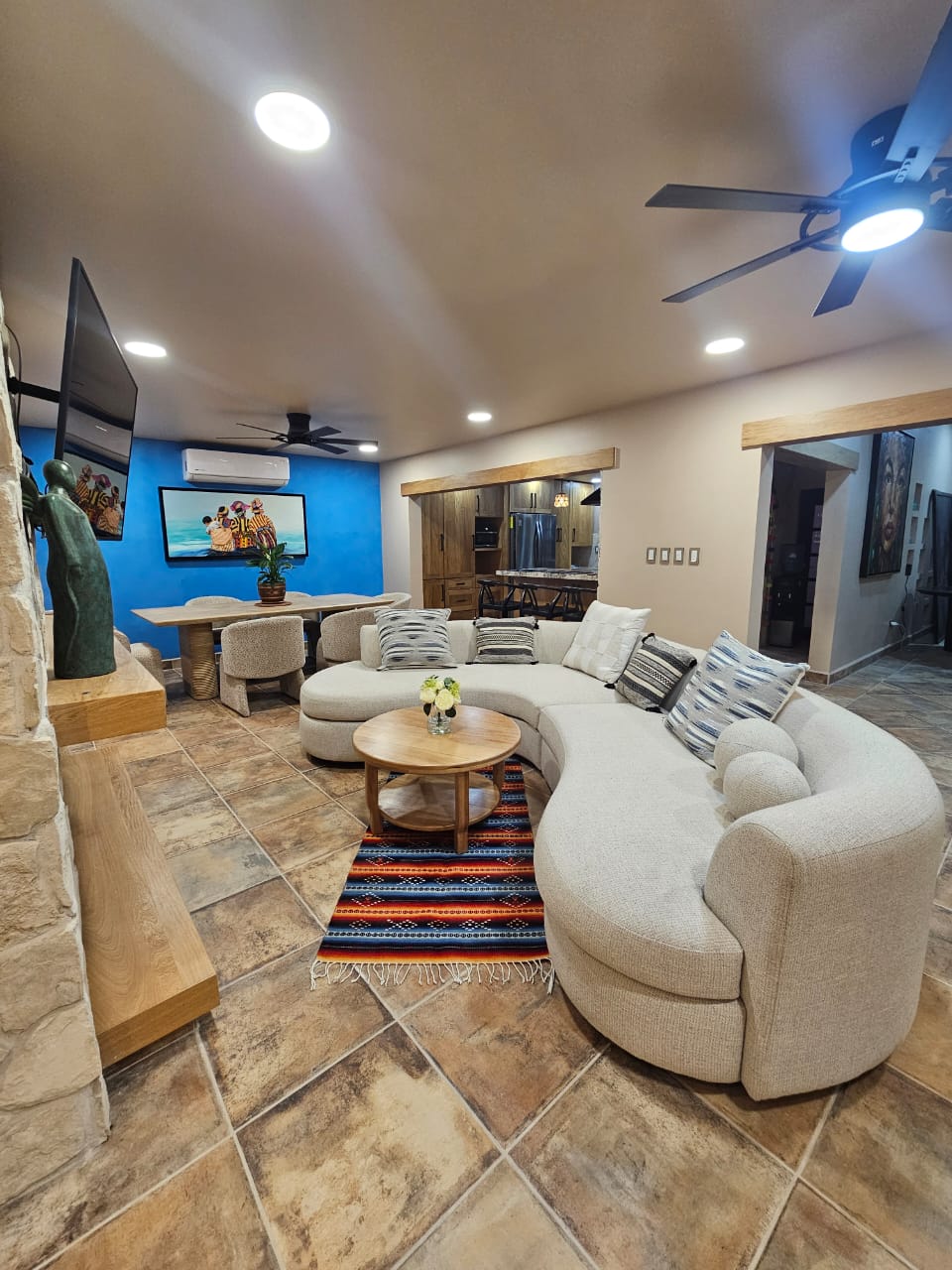 Disfruta de lo último en lujo y comodidad en esta oferta de alojamiento único una exquisita mezcla de diseño moderno, antiguo, contemporáneo y mexicano. Cada uno de los 3 dormitorios cuenta con una cama tamaño king con almacenamiento, baño privado y armarios empotrados. Hermosas vistas de las montañas giganta, mar de Cortés, campo de golf y canales de streaming te esperan desde las terrazas del segundo y tercer piso. Te sentirás como si estuvieras en un centro vacacional con jacuzzi para 6 personas, patio de cocina al aire libre con una fuente tranquila y baño.