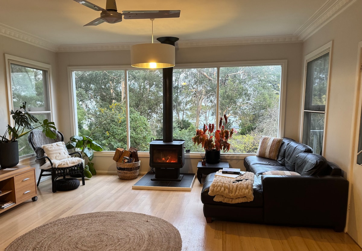 Located just 100m from Anglesea Main Beach, our home is perfectly located for your coastal getaway. This hidden gem is tucked away with ample outdoor space to relax in privacy, and also just a minutes walk to great coffee. The house is made up of 3 bedrooms (2 queens + 1 King beds). Filled with art, books, a big comfy couch and fireplace for and wood fired oven on the new large private deck. We are family friendly, but ask that you respect all of the pieces we have left there for your to enjoy.