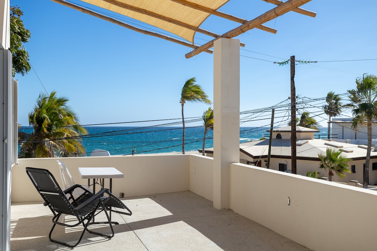 ¡Acogedor apartamento tipo estudio con terraza en la azotea con vistas al mar!