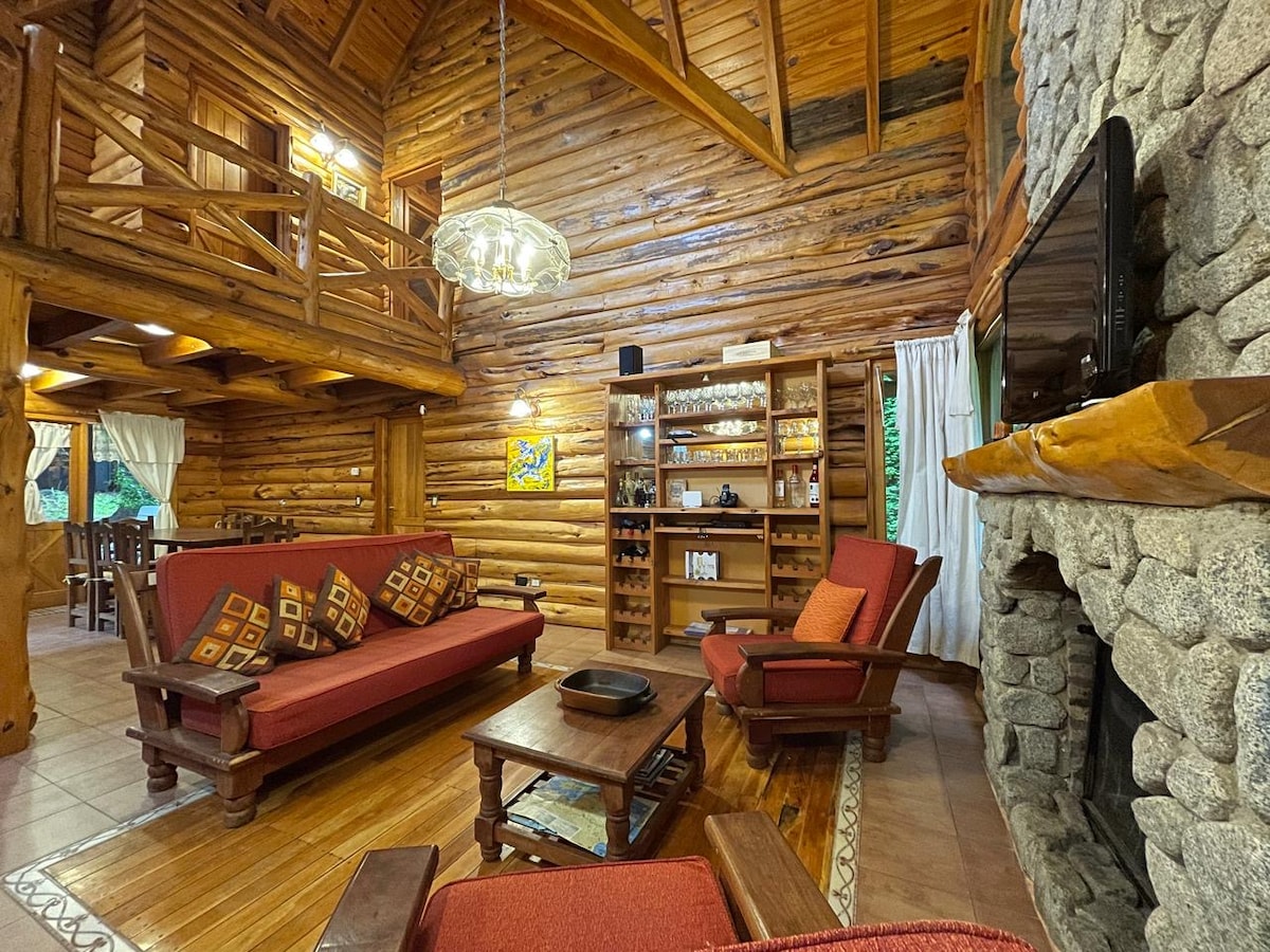 Descubre la armonía del bosque en esta luminosa y amplia casa para 5 personas. Su construcción de troncos y piedras te hará sentir en conexión plena con la naturaleza. En el living podrás distenderte, ya que posee un piano, hamaca paraguaya, televisión y un hogar para disfrutar de noches acogedoras. En el terreno, encontrarás un chulengo y una mesa para comer al aire libre. Ubicada a 5 km de Cervecería Patagonia y Colonia Suiza podrás disfrutar de paisajes imponentes de Circuito Chico.