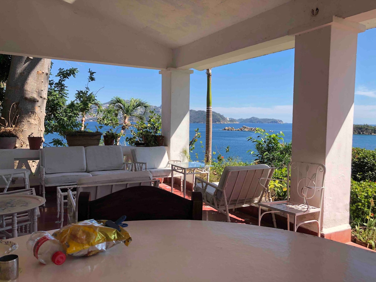 Totalmente renovada después de Otis: hermosa villa blanca en estilo relajado, de playa con detalles artesanales mexicanos. Piscina privada, 3 dormitorios con aire acondicionado, 2 estudios, sala de estar y comedor, todos con vistas completas al océano Pacífico. Llegada en auto muy recomendable, 2 lugares de estacionamiento disponibles. Casa club con una gran piscina, sauna y gimnasio. Limpieza incluida, servicio de cocina disponible a pedido. Seguridad las 24 horas. Sendero para correr/caminar disponible a través de Brisas, con vistas a la bahía de Acapulco.