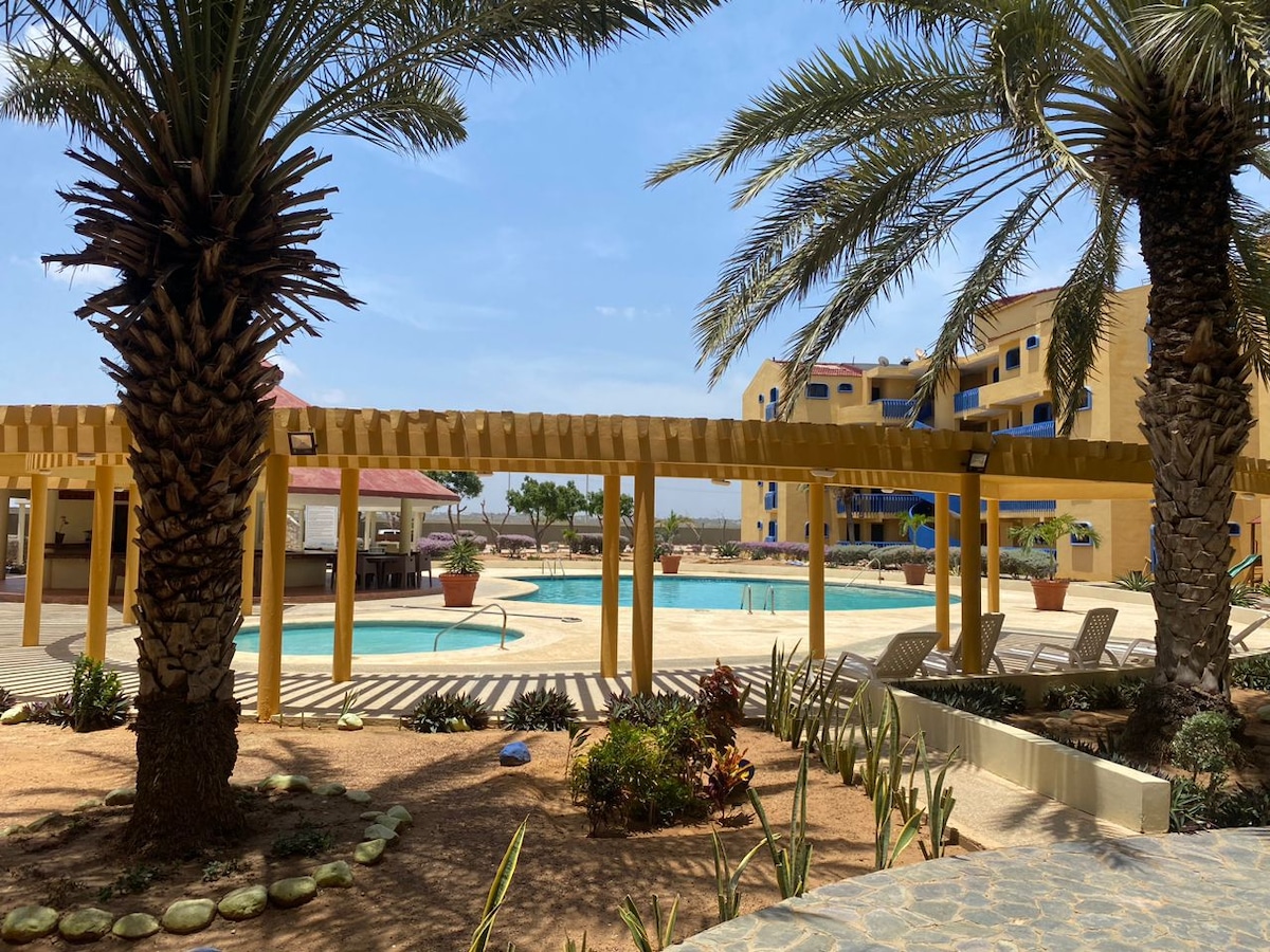 Residencias Salamar es un complejo vacacional ubicado en Villa Marina, Estado Falcón en Venezuela. Contamos con un Apartamento amplio y seguro con capacidad máxima para 8 personas con todas las comodidades para el disfrute de los huéspedes, con una ubicación privilegiada en la planta baja justo frente a la área social, toldos, camastros y entretenimiento en general. Ademas solo cruzando la calle disfruta de la mejor playa de la zona. NO SE ACEPTAN INVITADOS EXTRAS.