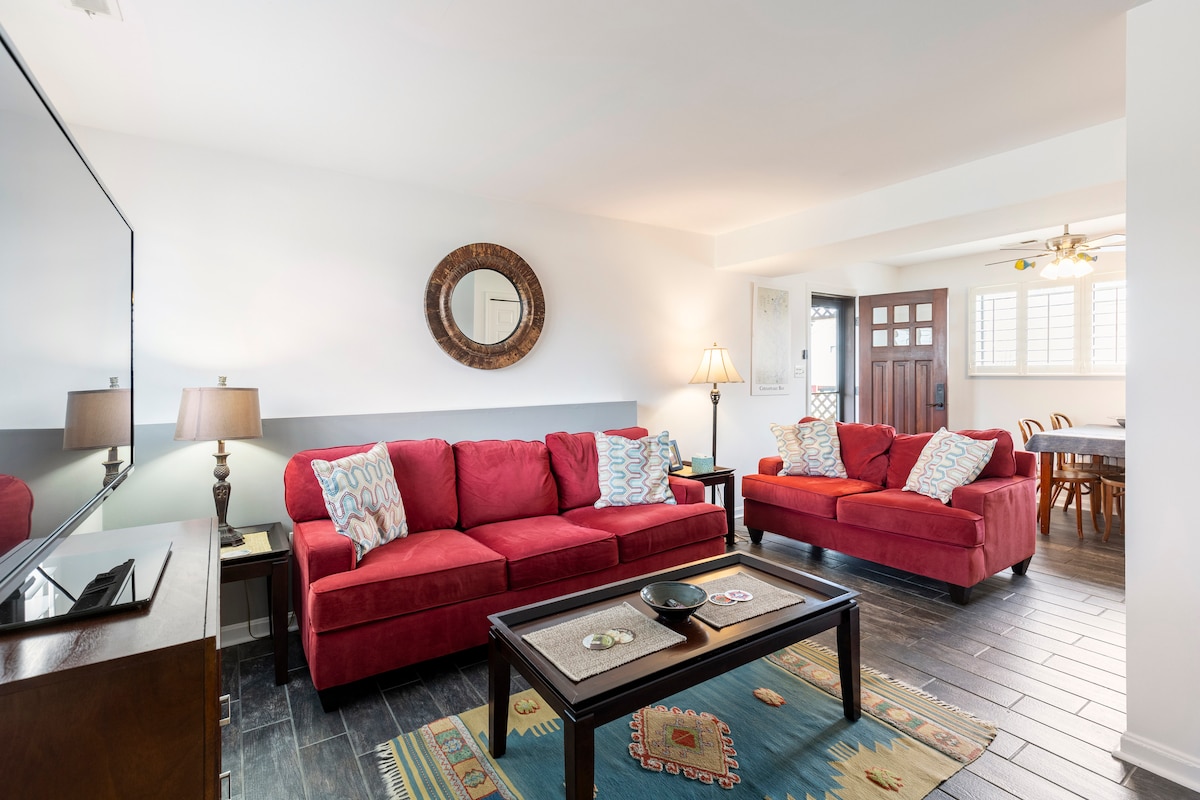 Amplia casa de 5 habitaciones cerca de D.C. con jacuzzi, fogata y sala de juegos: ¡perfecta para familias o grupos! Disfruta de 3 niveles de comodidad, una cocina completa, Wi-Fi rápido, TV inteligente y entrada independiente. Relájate en el patio trasero privado, haz una parrillada o descansa en el jacuzzi. Acepta mascotas y acomoda cómodamente a 12 personas. Ubicada en un vecindario tranquilo a pocos minutos del centro de Silver Spring y de Washington, D.C. ¡Reserva tu escapada hoy!