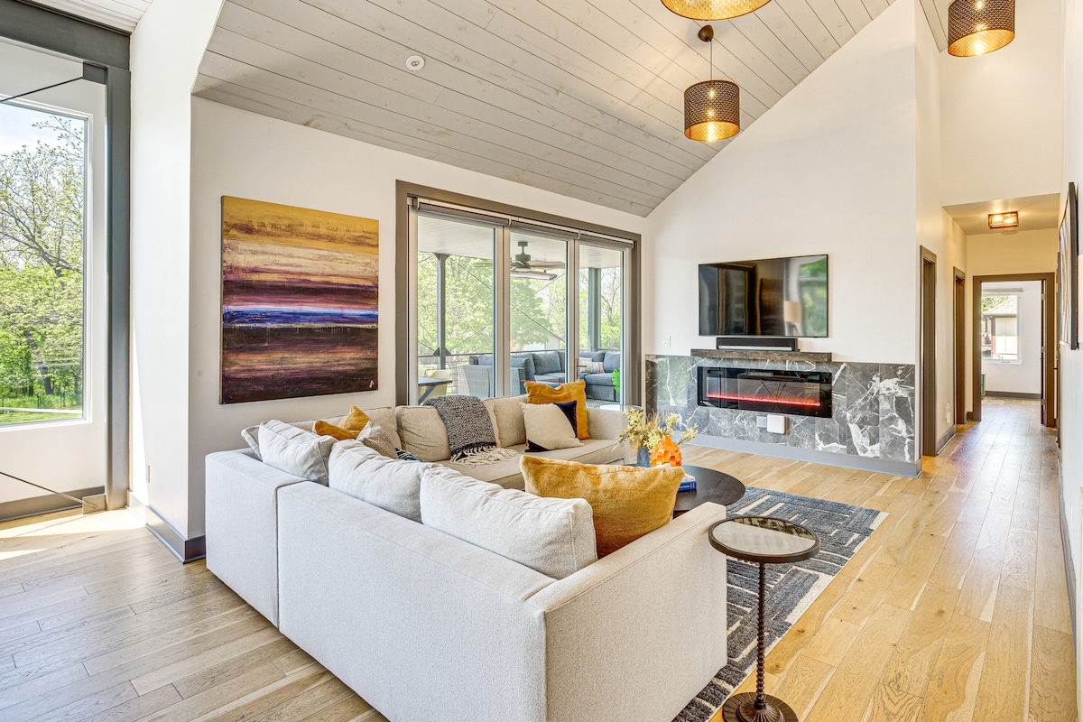 Vistas panorámicas desde este refugio de diseño vanguardista en la cima de una colina: su base en lo alto de la ciudad para la Copa Mundial de la FIFA, los museos, la vida nocturna, las atracciones para niños y mucho más. Está a entre 5 y 15 minutos de la mayoría de las atracciones de Kansas City, o puede ir caminando a Slap's BBQ y a los bares cercanos del vecindario. Cuenta con vigas de madera elevadas, una barra de café artesanal y una sala de juegos, además de excelente ropa de cama, un escritorio exclusivo y detalles cuidados en un espacio de 2,000 pies cuadrados para relajarse. Ideal para grupos de 4 a 6 personas que buscan algo único.