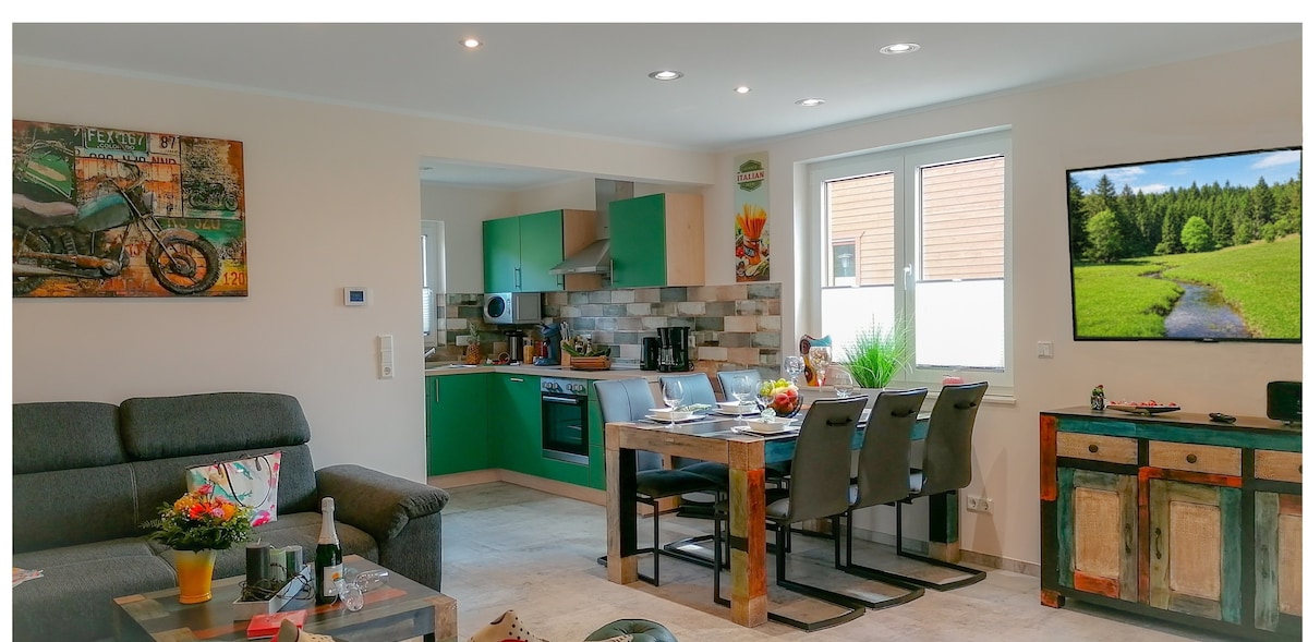 Te encantará el alojamiento por el entorno, que es bálsamo para cualquier alma. El jardín invita a jugar y quedarse, es privado, vallado y «a prueba de fugas» para aventureros de 2/4 patas. La casa en sí ha sido completamente renovada, tiene baños nuevos, uno de ellos adaptado para personas con discapacidad y mucho espacio. La cocina-comedor y la sala de estar ofrecen mucho espacio para charlar cómodamente. Mi alojamiento es bueno para parejas, familias + niños/bebés, grupos, varias generaciones y amigos peludos (mascotas).