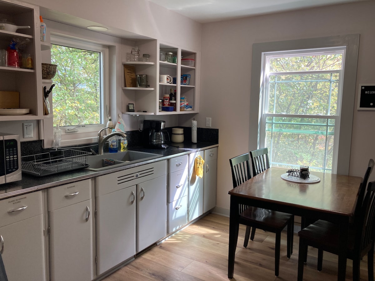 Berry Hill Flat sits perched on a bluff above Trout River Valley. Trout live in beautiful places and so do we! The Flat offers a king bed in the bedroom, full bathroom, full kitchen, living room, twin bed, and private ground floor entrance. It is the lower level of our beautiful log home nestled in the walnut trees. Minutes to Decorah, Waukon, or the trout stream in the Valley below.