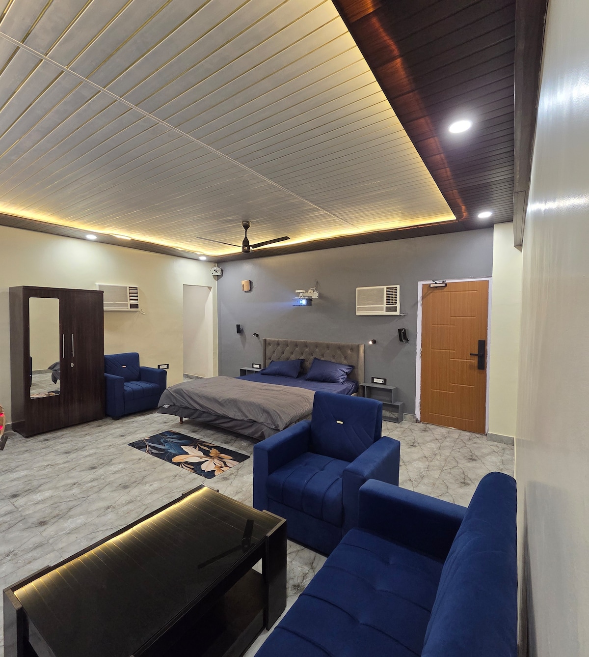 Escape to our warm and inviting 1BHK apartment, perfectly suited for families, couples, or solo travelers. Located in a prime area, our cozy abode offers the perfect blend of comfort and convenience. Amenities: - 1 spacious ac bedroom with a king-size bed - 2 sofa cum beds in the living room - Fully functional kitchen with basic amenities, perfect for whipping up meals - Attached washroom for added convenience - Dining table for meals
