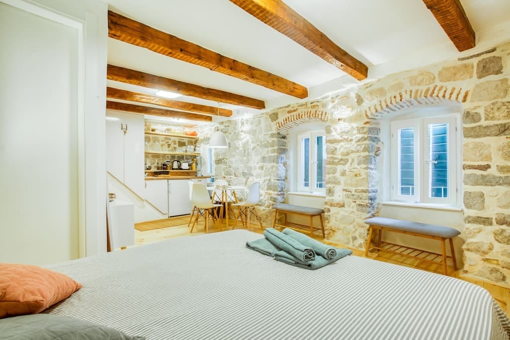 El estudio frente al mar es ideal como el lugar cómodo para dormir y desayunar en términos propios para hasta 3 personas. Este bien utilizado 22 m2 es ideal para una pareja con un niño o tres amigos jóvenes cuya mente está decidida a explorar Montenegro. Este estudio totalmente funcional acaba de llegar al mercado en junio de 2022 después de una renovación completa. La proximidad de la pequeña tienda de comestibles, el ferry, dos paradas de autobús y tres playas de guijarros lo convierten en un lugar fantástico para pasar la noche. Como turista, tienes la obligación de pagar la tasa turística