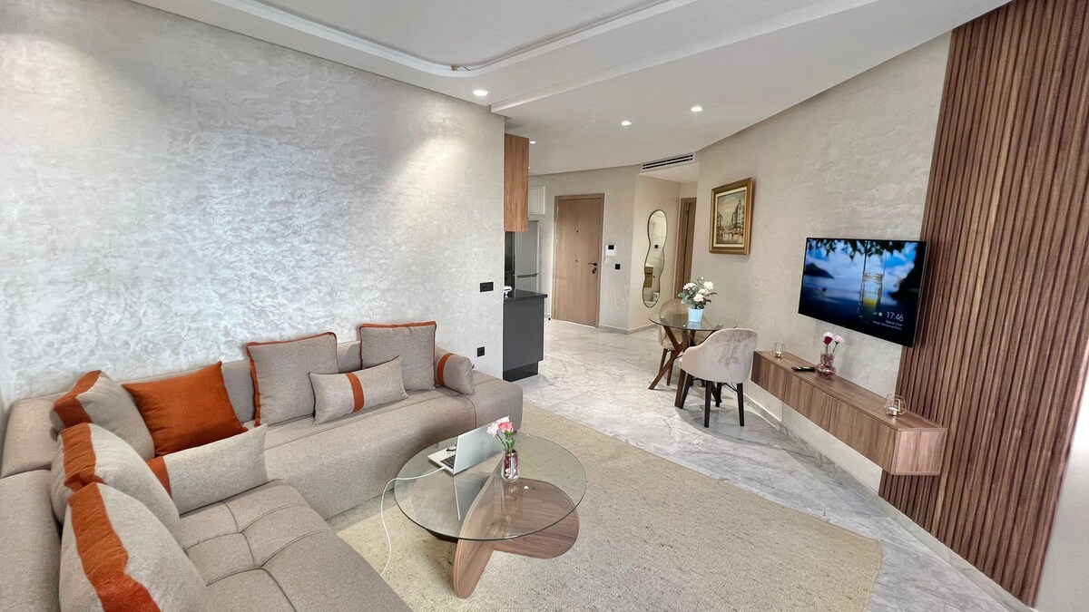 Apartamento nuevo y acogedor, funcional cerca de todos los comercios en una zona céntrica y estratégica (lavandería, restaurante, supermercado, farmacia, mercado…) Wifi gratuito, IPTV con todos los canales… Televisor de 60 pulgadas con dormitorios Ropa de cama de alta gama…. Apartamento amueblado de 38 M2 en una urbanización con seguridad 24/24 y tranquila. Consta de un dormitorio, un baño, una cocina abierta y totalmente equipada, una sala de estar agradable y acogedora nespresso y botellas de agua disponibles