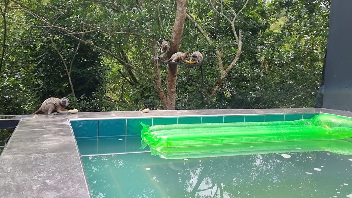 🏡🐒Casa Micos; a bordo de carretera, Con vista al río y sus montañas, para disfrutar con amigos, familia o Pareja. Ideal para relajarte y descansar: Justo atrás está: “el charco del amor” y alrededor El Trocadero y otros. Puedes disfrutar en cualquier momento un hidromasaje en el Jacuzzi🛁. Te recomiendo lleves bananas... las necesitarás para cuando lleguen los monkeys 🐵🍃🍌🐒 disfrutarás verlos comer fruta y seguir su camino en Libertad, a 8 min 🚘vía pavimentada del Parque de San Rafael
