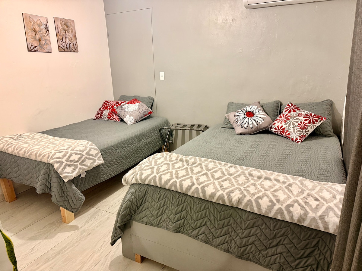 Cuarto con todas las comodidades en un espacio de 16m2, tiene baño privado, mesa de trabajo, aire acondicionado, televisión de 42 pulgadas con acceso a cable, Youtube y Netflix. Cuenta con un restaurante y ofrece una cortesía de pan dulce y café por las mañanas, durante tu estancia. Llamadas a celular y llamadas locales sin costo. Conexión WIFI de alta velocidad. Servicio de limpieza diario en la habitación incluido. Resguardo de equipaje. Habrá personal que te oriente las 24hrs del día.