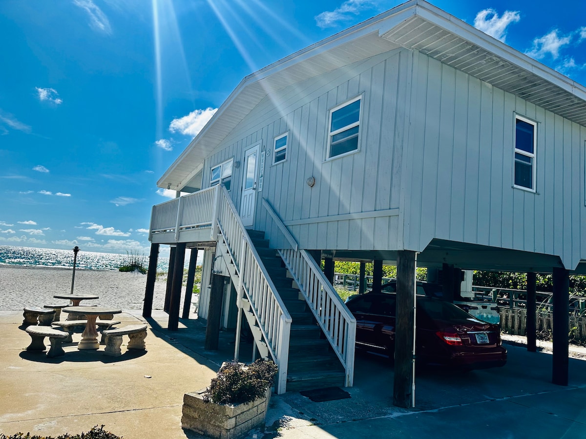 ¡PLAYA PRIVADA ABIERTA! ¡DISFRUTA de tu propio bungalow! (NO es un condominio, sin ascensores, pasillos ni vestíbulos abarrotados) Barrett Beach Bungalows conserva los tradicionales encantos de la playa de Florida con estilo en 4 encantadores bungalows. ¿Por qué pasar tus vacaciones en Florida en un hotel lleno de gente? DOLPHIN BUNGALOW está a SOLO 50 pasos de la playa, se encuentra detrás del bungalow frente a la playa, pero no frente a la playa. TODOS los huéspedes disfrutan de piscina climatizada frente a la playa, tumbonas, sombrillas, chimenea, voleibol y juguetes. ¡Totalmente equipado, superlimpio!