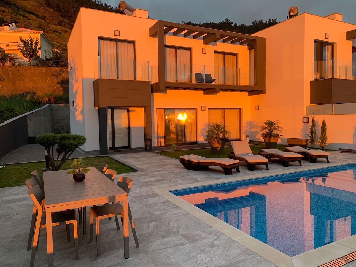 Moderna villa de 3 dormitorios en el soleado Arco da Calheta con vistas al mar y a la montaña. Disfruta de una piscina privada climatizada, terraza con parrilla, wifi rápido y garaje seguro. A poca distancia de restaurantes y cafés, a 10 minutos en auto de la playa de Calheta y a 30 minutos de Funchal. Ideal para parejas, familias o grupos: la base perfecta para explorar Madeira.