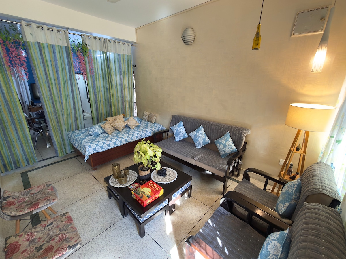 🛏️ Fully Furnished 2BHK 🛋️ SofaCumBed Living Room for 5th & 6th guest 🛁 2 Bathrooms 🍳 Equipped Kitchen 🌿 Large Balcony ⬆️ 1st Floor (25 stairs) 🚫 NO LIFT Available *Complimentary Snacks/Drinks (Daily)* 🍹 ×2 Cold Drinks 🍟 ×1 Uncle Chips & Lays 🍫 ×2 5-Star Chocolate 🥜 ×1 Bikaji Peanut Salted 🥜 ×1 Bikaji Bhujia 🥜 ×1 Bikaji Nutcracker 🥜 ×1 Bikaji Mix Namkeen 🥜 ×1 Bikaji Moong Daal *Note*: Daily refill of the same items is included as per your booked nights.