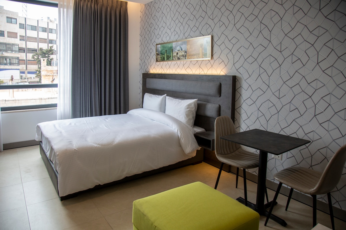 single room with nice decoration , just 10 minutes walking from Roman Theater and Citadel. free parking.shared bathroom. Breakfast not include in the price of the room and it cost 2JD Per day. AC COST 3 JD