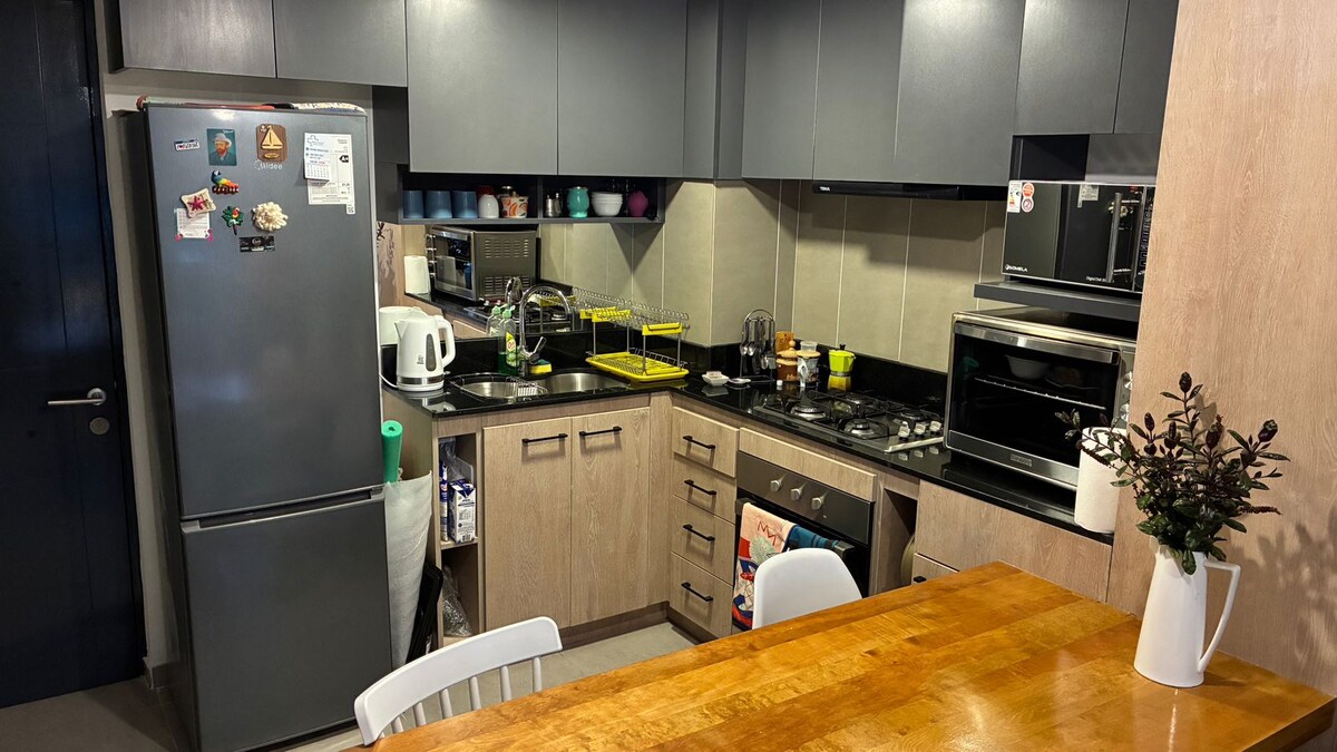 Tranquilo lugar con hermosa vista, calefacción central, conserje las 24hrs, cercano al mall, hospital y Zona Franca. Tiene Wifi, estacionamiento privado, cocina, lavadora y áreas verdes.