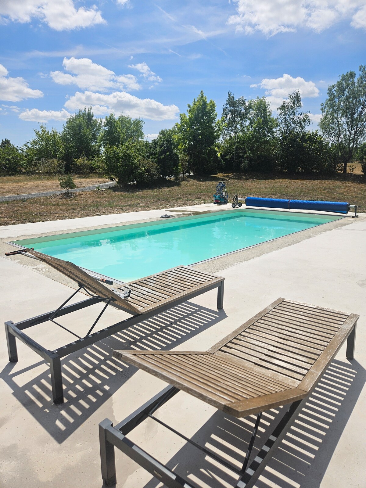 Luxury French gite, just outside the lovely market town of Aubeterre. Newly refurbished to a very high standard, with a large open-plan kitchen/family room , 1 Double & 2 Twin bedrooms (all with private shower room). 10 x 5m HEATED (May and September other times on request at a charge) pool over looking open fields and large patio. Walk into the local village to make use of the local shop for your fresh morning bread and croissants etc, or enjoy rivers, chateau and vineyards further afield.