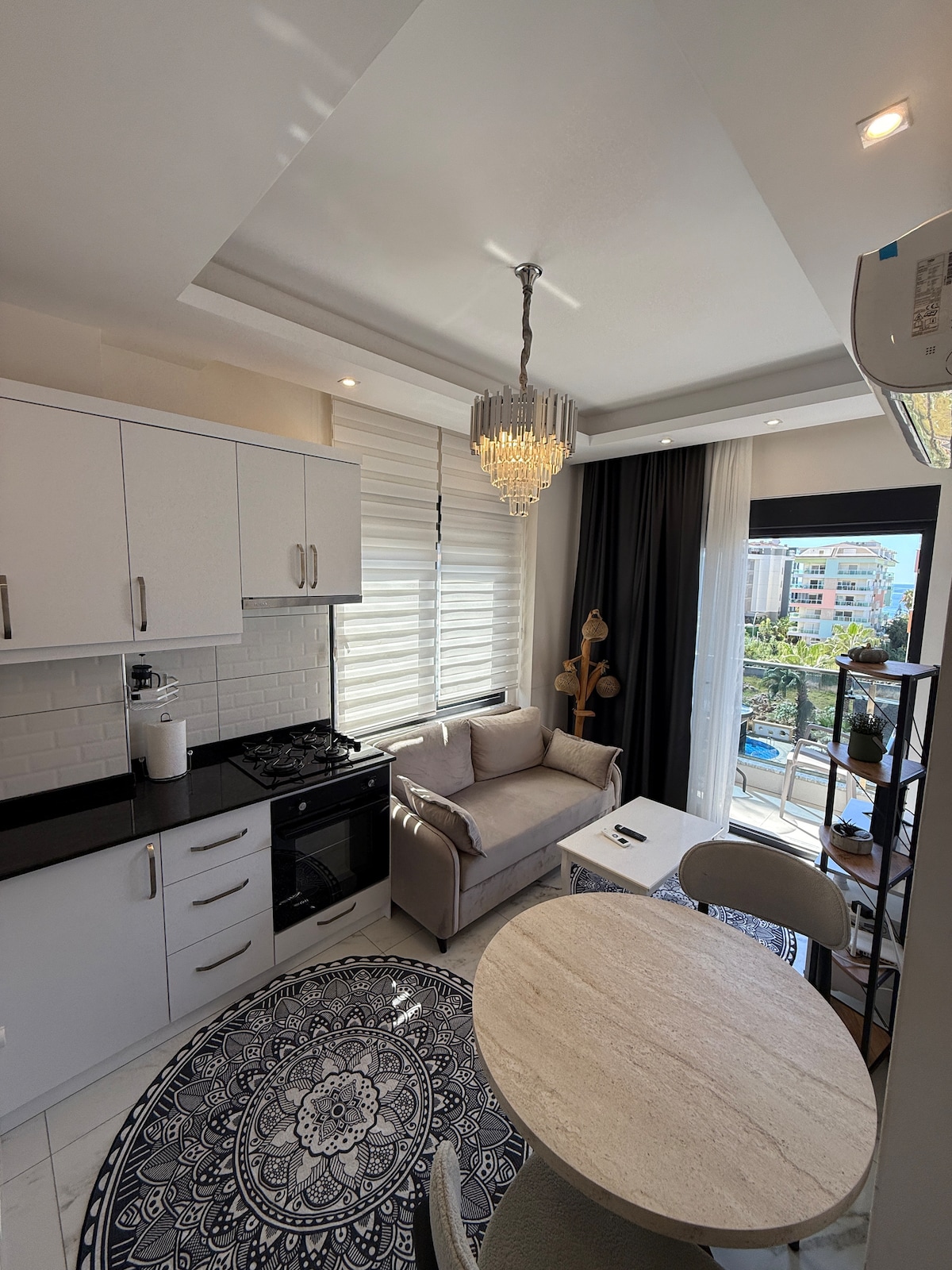 Nuestra residencia de diseño personalizado está situada en la ladera del castillo de Alanya y tiene una vista panorámica de la playa de Cleopatra y la ciudad. Ofrece una estancia agradable con su diseño moderno, amplia terraza, piscina compartida, cómoda sala de estar y sauna. Gracias a su ubicación céntrica, ofrece fácil acceso a los lugares históricos y turísticos de Alanya. Es adecuado tanto para estancias cortas como largas y es ideal para huéspedes que buscan una experiencia única y cómoda.